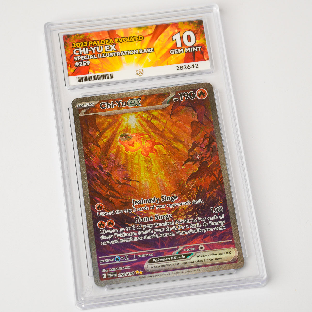 Own a stunning Chi-Yu EX 259/193 from the Paldea Evolved set, professionally graded Gem Mint 10 by ACE Grading.